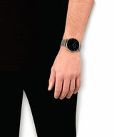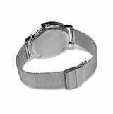Norwegian minimalist design. High quality watch with 46mm diameter, silver with black dial and silver stainless steel mesh band, and with one of the most popular quartz movements on the marked, the workhorse Miyota 2035 Super.